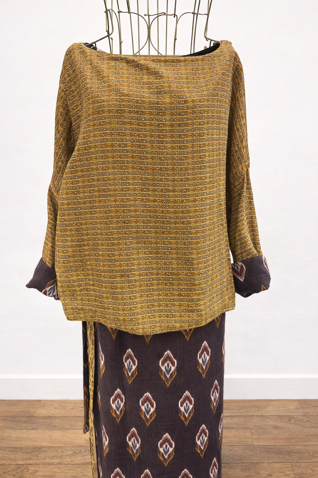 Top manches 3/4 en soie d’un côté et en laine de l’autre.