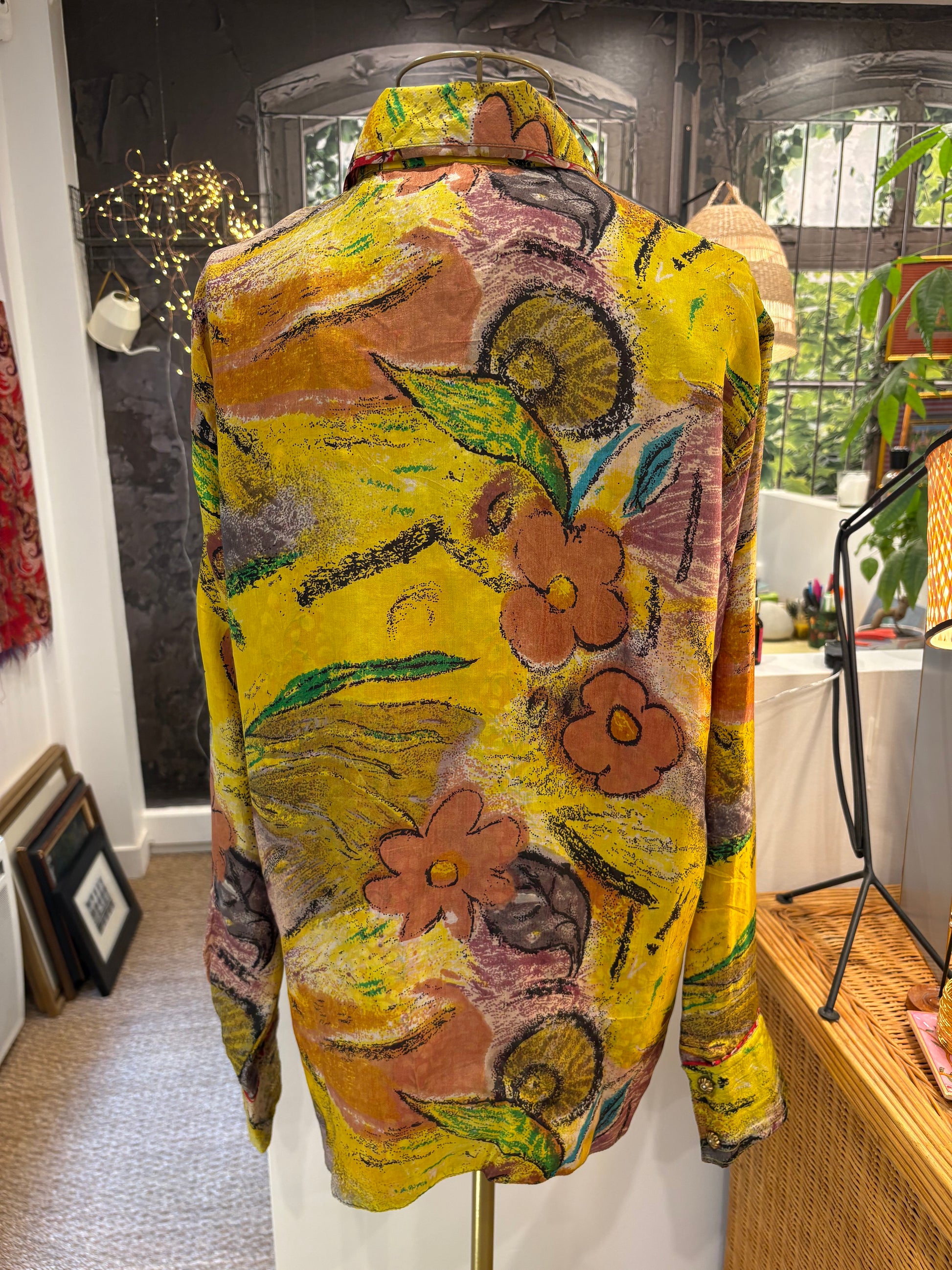 Chemise en saris de soie recyclée et réversible, avec des poches plaquées.