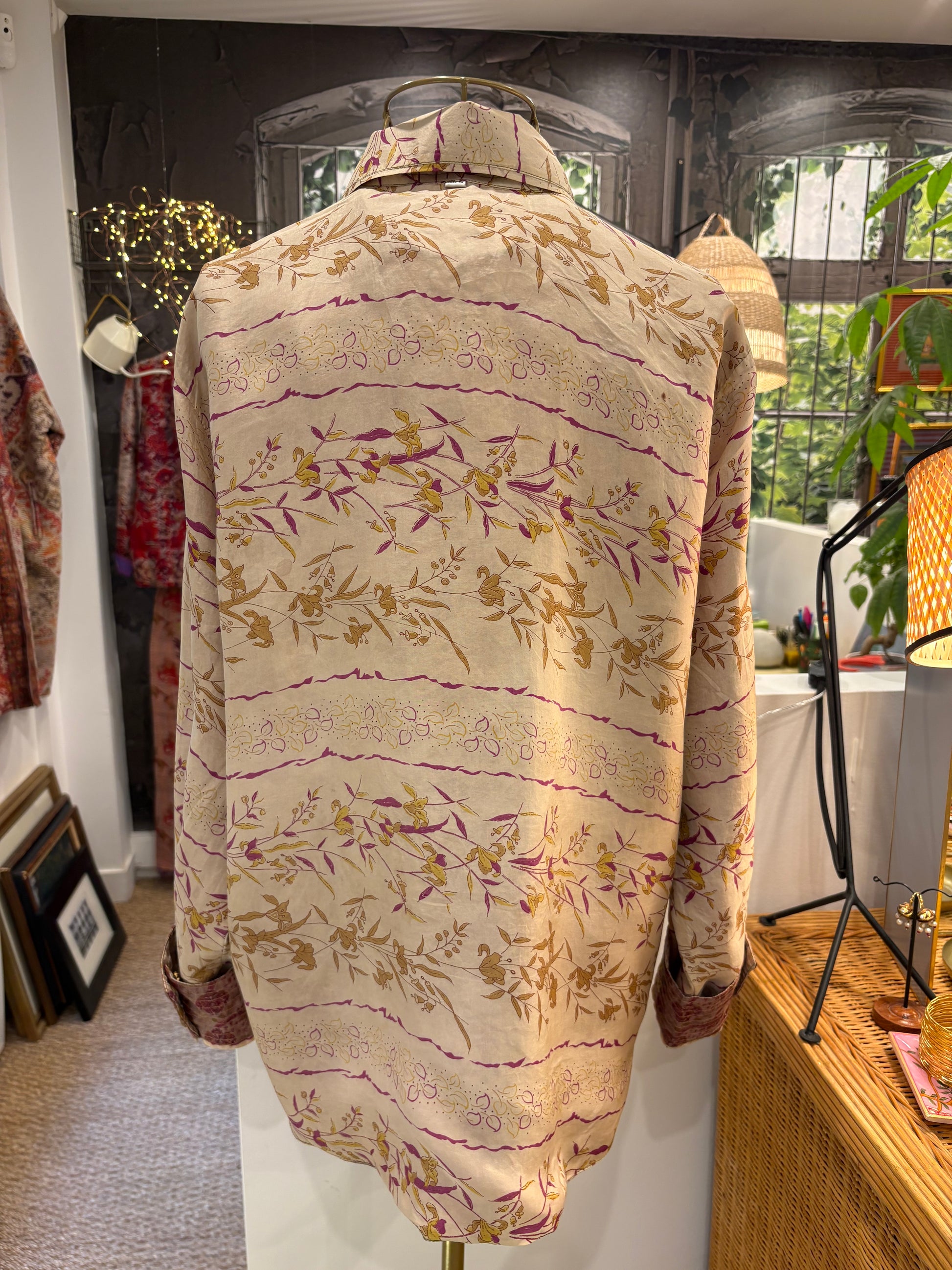 Chemise en saris de soie recyclée et réversible, avec des poches plaquées.