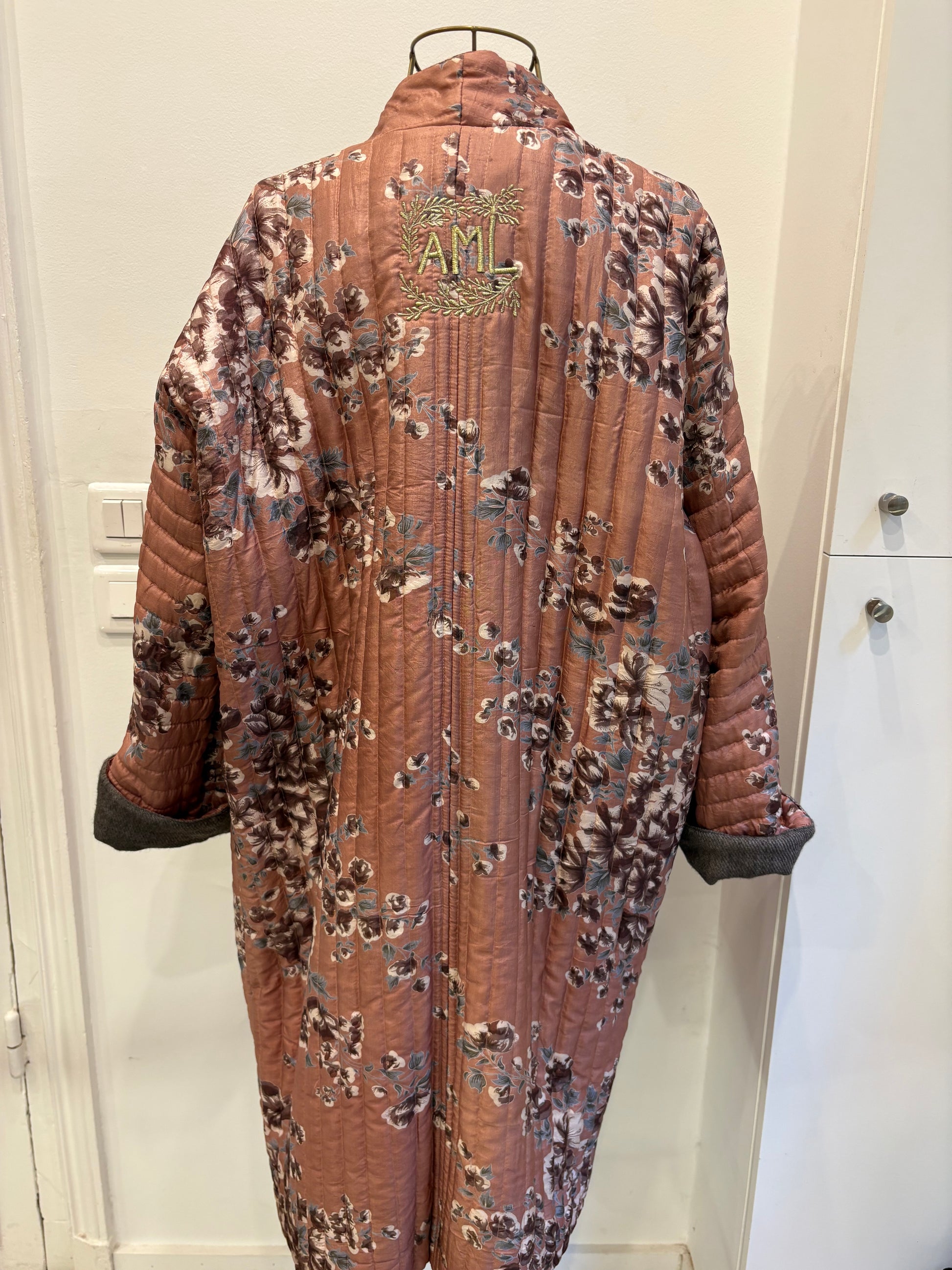 Manteau en laine doublée de soie, entièrement réversible et fabriqué à partir de saris recyclés.